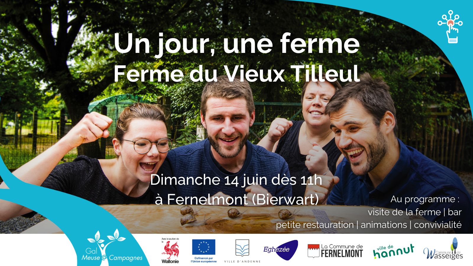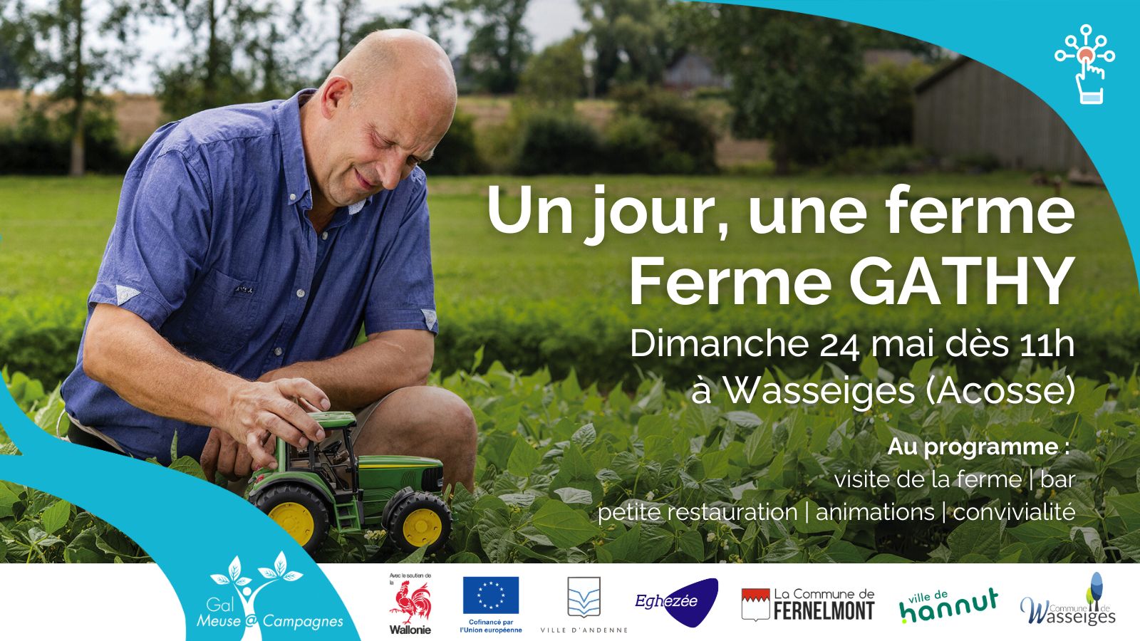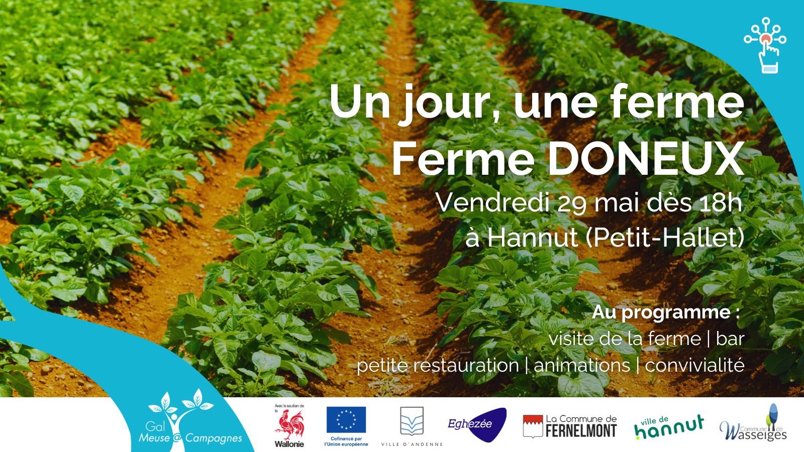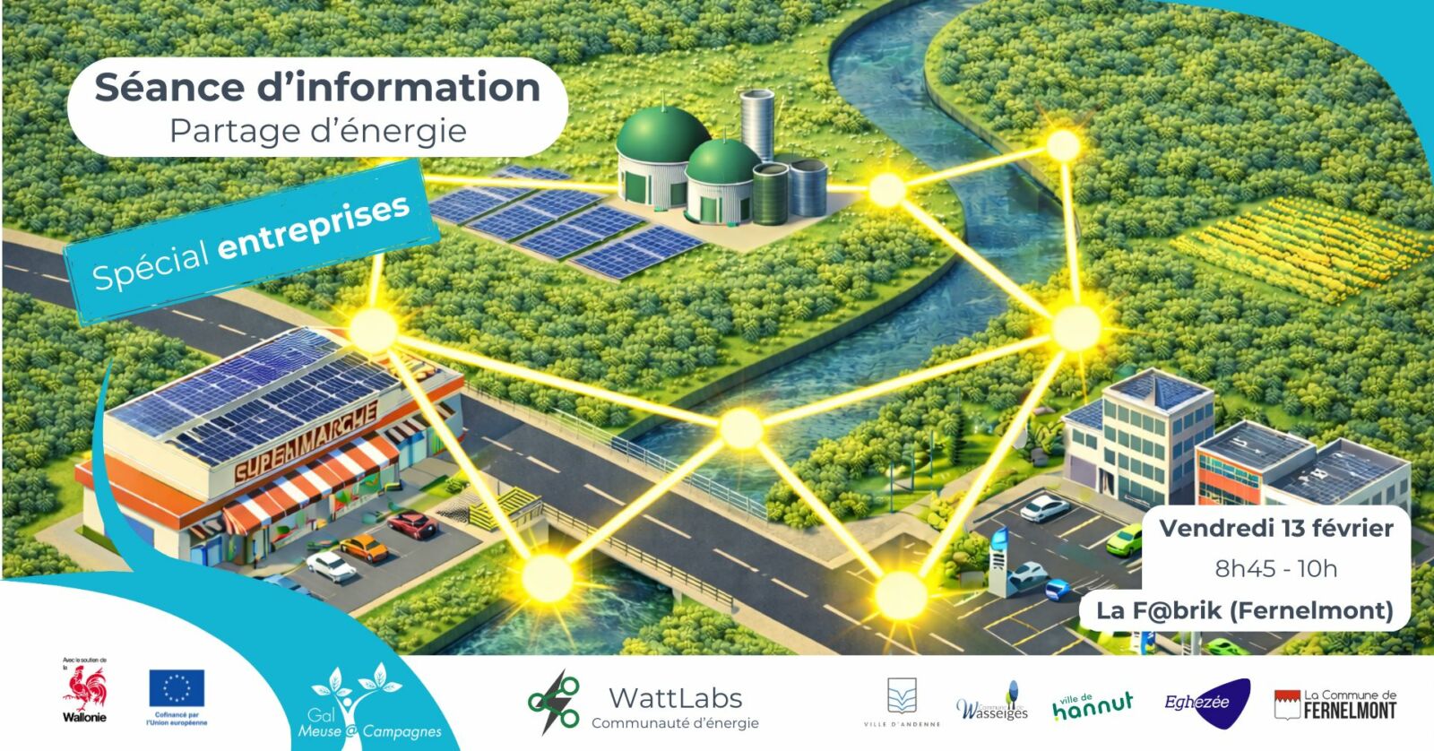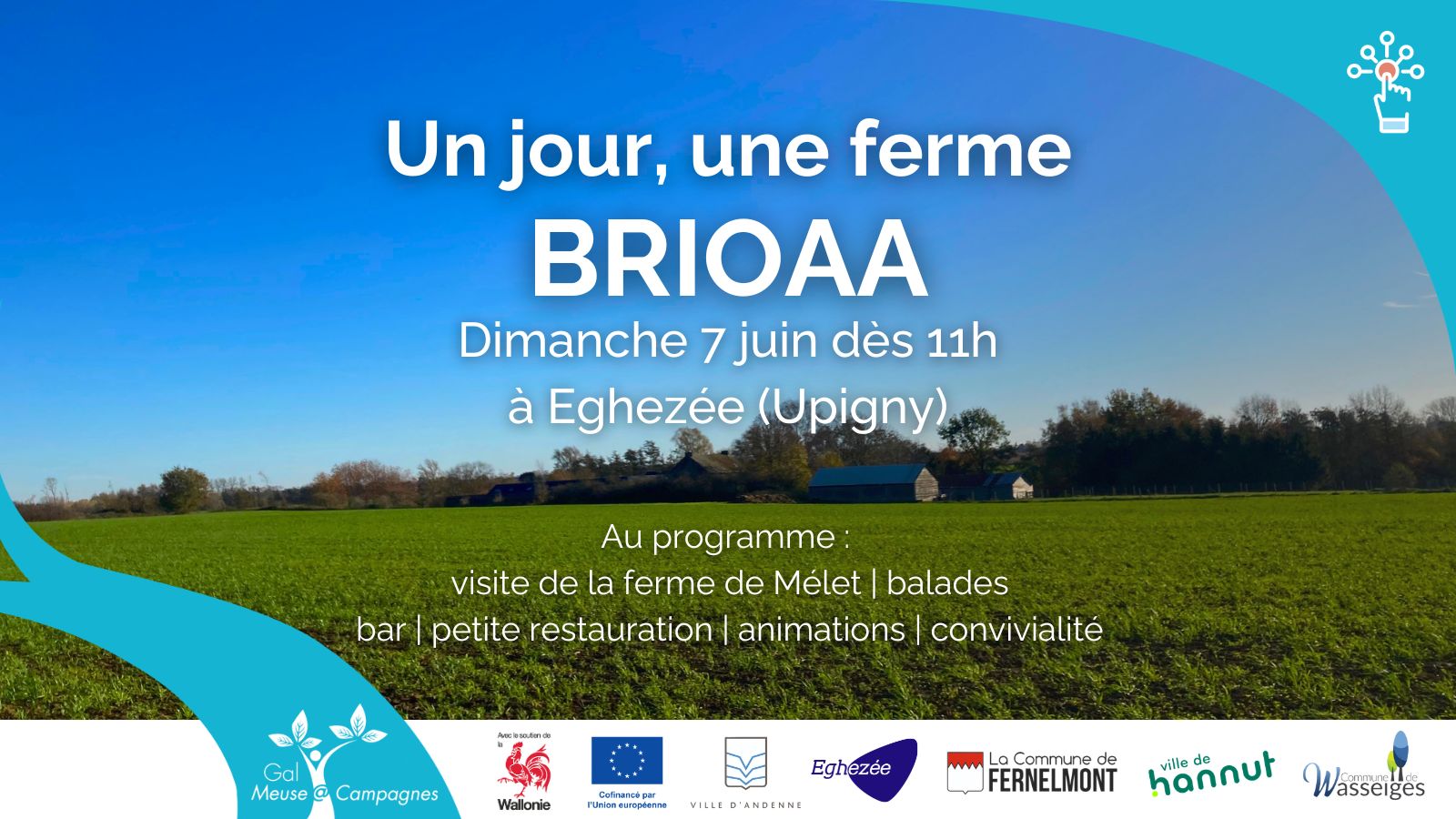 Le GAL Meuse@Campagnes (Groupe d’Action Locale) rassemble des habitants, des associations, des élus, des entreprises… issus des communes d’Andenne, Eghezée, Fernelmont, Hannut et Wasseiges pour mettre en œuvre des projets de développement durable.